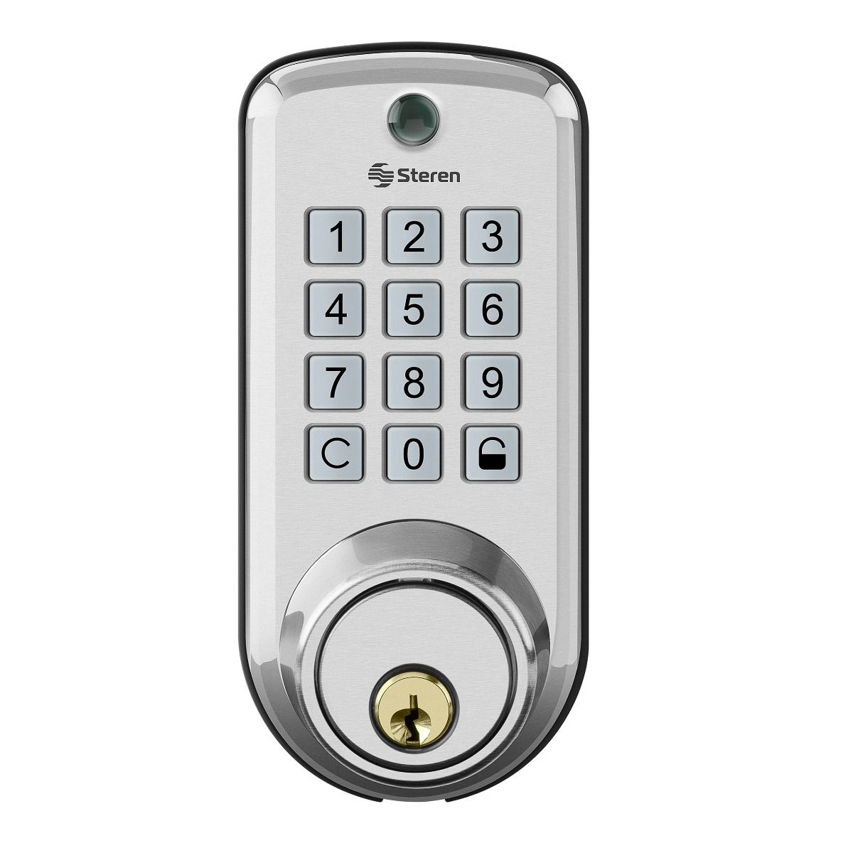 También, tiene la función de seguro electrónico mediante un botón que bloquea el teclado para que la apertura sea sólo con llave.