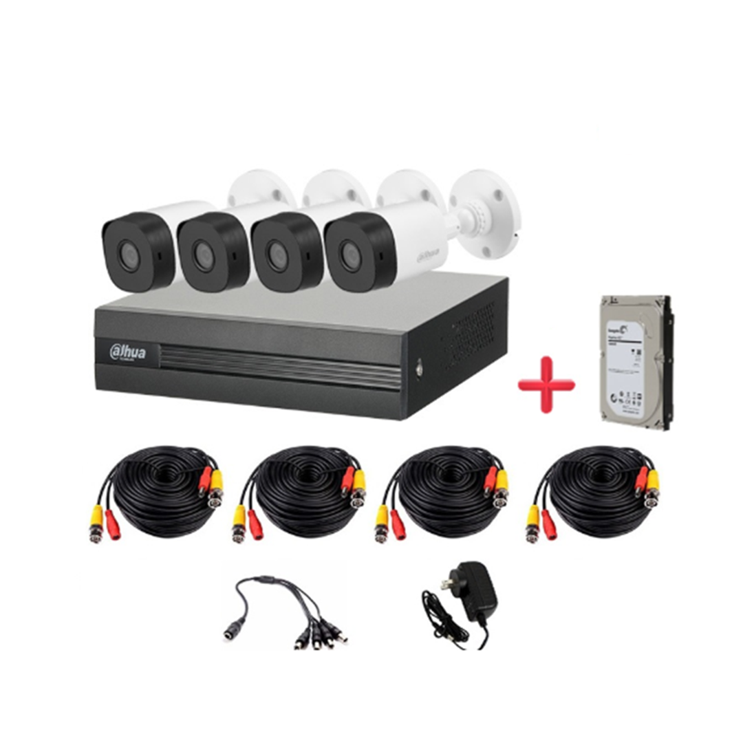 El kit COOPER XVR1A04KIT incluye todo simplemente conecta la energía al DVR y las cámaras + Disco Duro de 1TB.