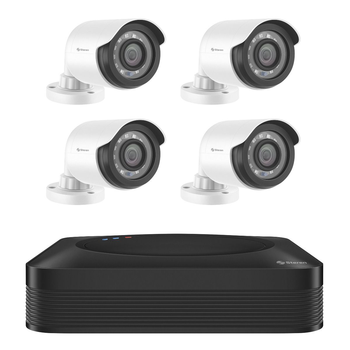 El sistema incluye 4 cámaras alámbricas tipo mini bala, con resolución de 2 Mpx y visión nocturna.